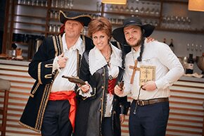 Квест в школе “Завещание Флинта”: Пираты, конечно, знают толк в демократии. «Кто за капитана?» – «Я!», «Кто против?» – «Ноу-ноу!», а потом всех несогласных отправляют за борт на корм рыбам.